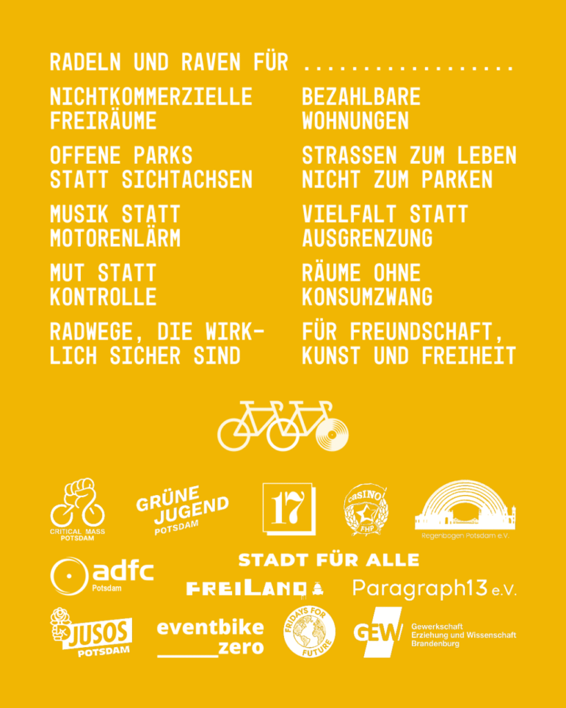 Aufruf für einen Fahrrad – Rave junger Menschen quer durch Potsdam am Freitag, den 24. Oktober 2025