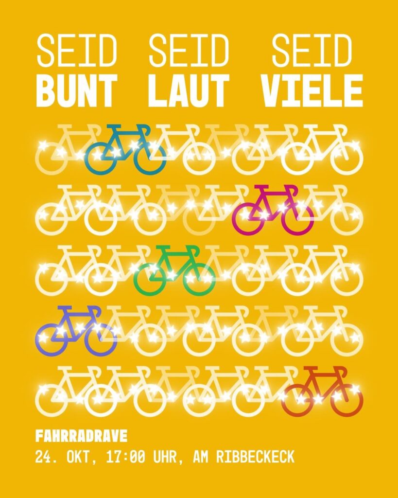 Am Freitag, den 24. Oktober 2025 radeln wir durch die ganze Stadt, von bedrohten Freiräumen, über Straßen, die sonst Autos gehören zu Orten, die uns wichtig sind.