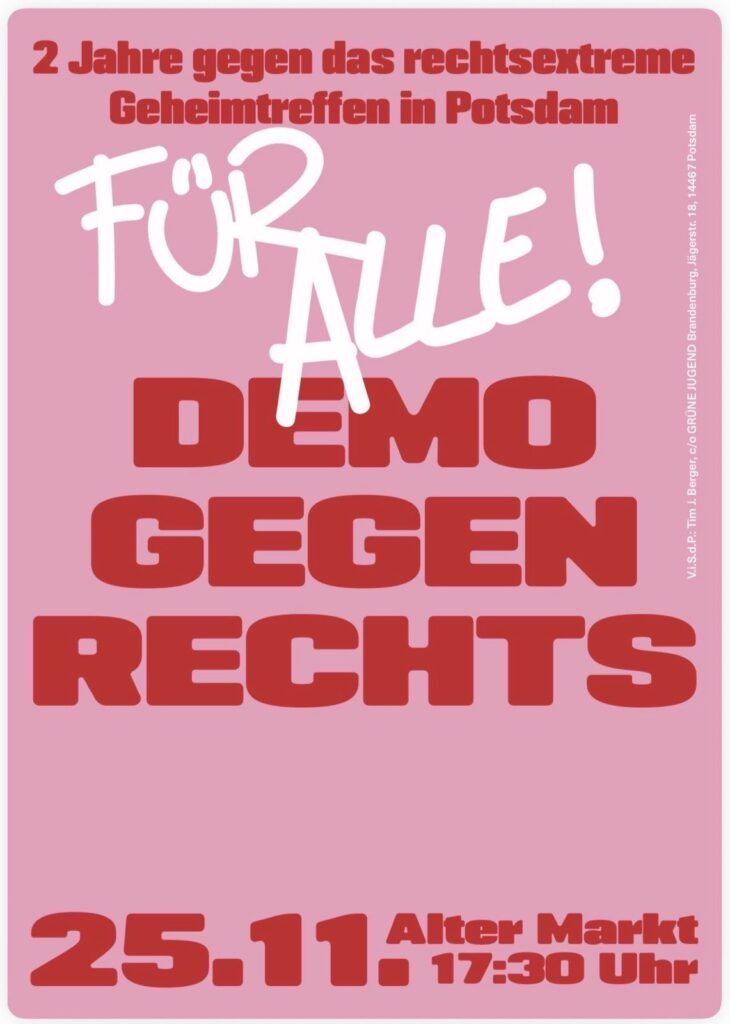 Nächste Gelegenheit: Demonstration zum 2. Jahrestag des rechten Geheimtreffens im Adlon am 25. November 2025 auf dem Alten Markt.